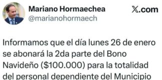 El intendente de la Municipalidad de Goya doctor Mariano Hormaechea anunció que este lunes 26 de enero se acreditará la 2da parte del Bono...