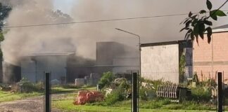 El fuego afectó uno de los galpones de la empresa. Los vecinos del lugar advirtieron el olor a quemado y alertaron a las autoridades...