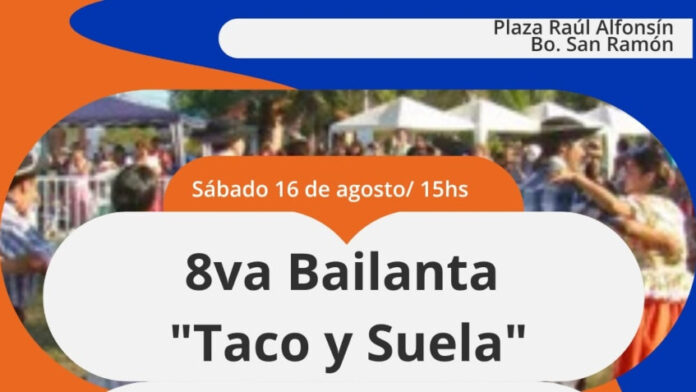 El programa del gobierno municipal continúa con su recorrido, llevando música y baile para todas las edades, con acceso libre y gratuito. Este sábado desde las 15:00 horas en la Plaza Raúl Alfonsín, del barrio San Ramón, se llevará a cabo el 8° encuentro La Bailanta del Taco y Suela.