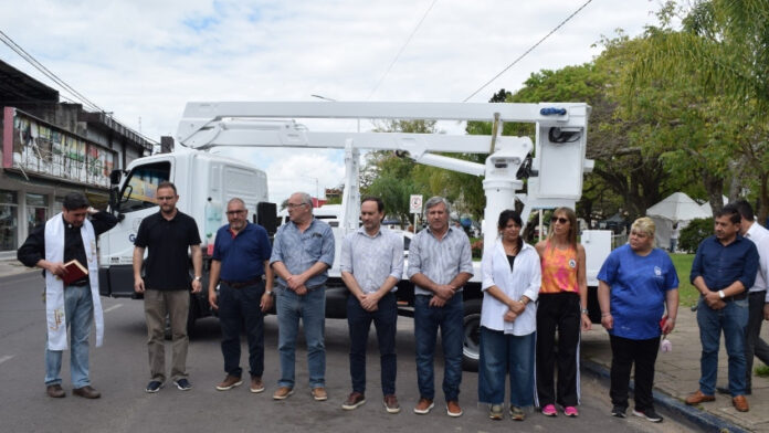 El jefe comunal subrayó la importancia de esta inversión: “En primer lugar, agradecer al padre Ariel que ha venido a hacer la bendición de esta nueva adquisición, de este nuevo vehículo muy importante para el área de Luminotecnia”, expresó.