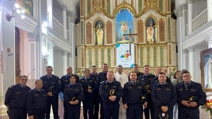 En la tarde del miércoles, las distintas dependencias policiales de Goya se congregaron en la iglesia Catedral para participar de la novena por la Patrona de Goya.