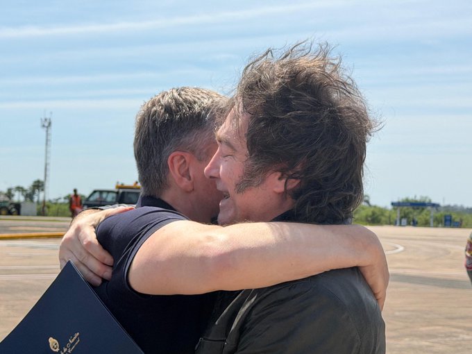 Tras la gira por Resistencia, Javier Milei cruzó el puente “General Belgrano” con destino a ciudad de Corrientes capital, adonde arribó cerca de las 13.30.