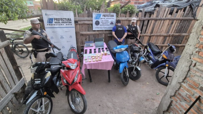 Efectivos de la Prefectura Naval Argentina realizaron dos allanamientos en la ciudad correntina de Goya, detuvieron a dos involucrados y secuestraron droga que sería comercializada al menudeo.