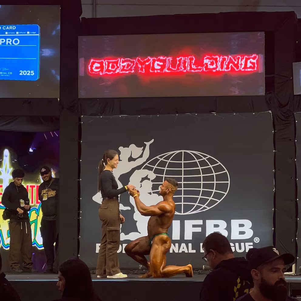 El fisicoculturista que protagonizó un emotivo momento con su novia en un torneo