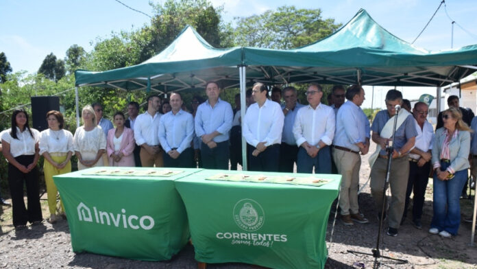 Durante la visita a la ciudad de Goya, el Gobernador de Corrientes, Gustavo Valdés entregó las viviendas del Programa “Oñondive”. La ceremonia se llevó a cabo en Paraje Remanso, en avenida Patricias Argentinas 1650.