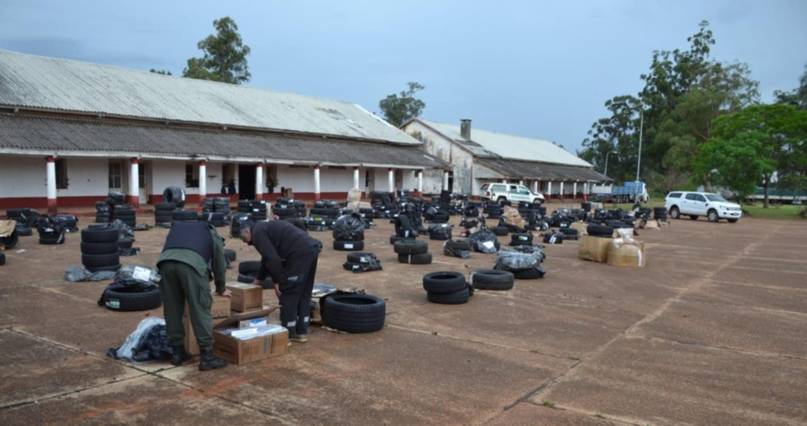 Gendarmería Nacional Argentina (GNA) secuestró una gran cantidad de neumáticos y paquetes de cigarrillos que eran transportados en encomiendas sin el aval legal correspondiente. El procedimiento se realizó en el Control Fijo de la localidad correntina de Cuay Grande, dependiente del Escuadrón 57 “Santo Tomé”.