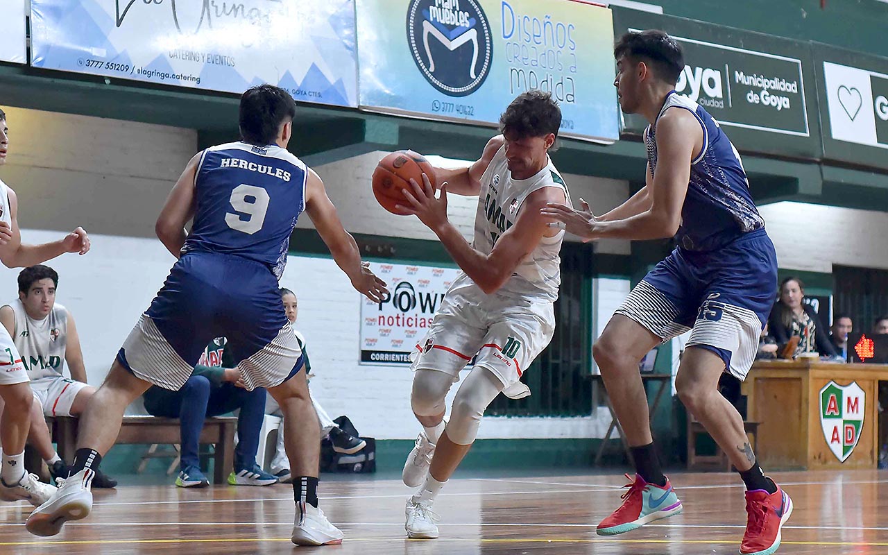 En el cierre de la fase regular de la Liga Pre-Federal, Amad de Goya reaccionó en el segundo tiempo para derrotar claramente este viernes a Hércules por 65 a 44, para finalizar en la tercera posición de la Zona “B”, mientras que los capitalinos quedaron eliminados del certamen. En el “verde” goyano los destacados fueron José González y Franco Piasentini, ambos con 11 puntos, mientras que Pablo Brocal fue el goleador en el equipo del barrio Libertad.