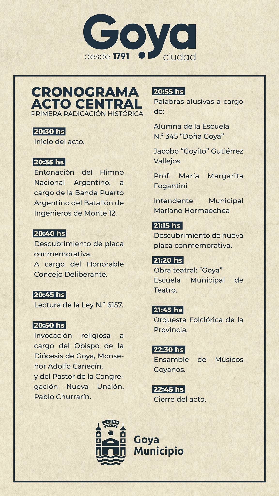 El Intendente Mariano Hormaechea, invita a todos los vecinos a celebrar la primera radicación histórica de la ciudad, el domingo 9 a las 20 y 30 horas, en la Plaza Mitre”