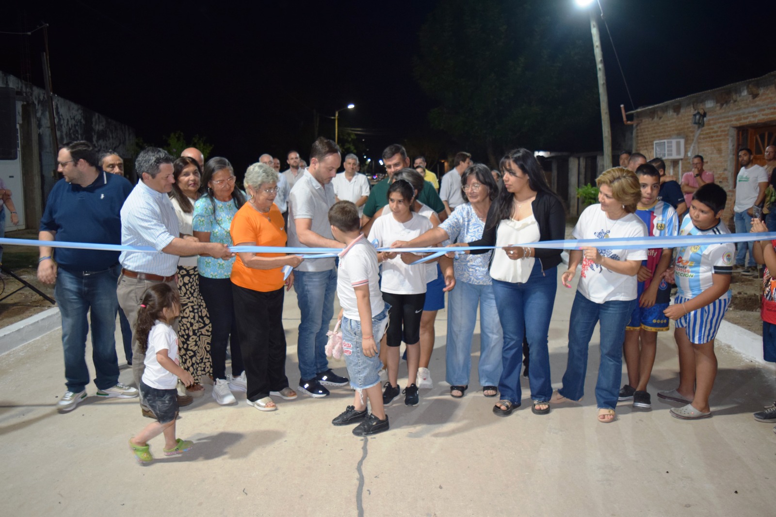De la ceremonia de inauguración de la cuadra San Juan del Barrio Scófano, 120 metros de pavimento en hormigón armado, acompañaron al intendente municipal, el diputado provincial Jesús Méndez Vernengo, el presidente del barrio Rubén Merlo, concejales, funcionarios, presidentes barriales, vecinos.
