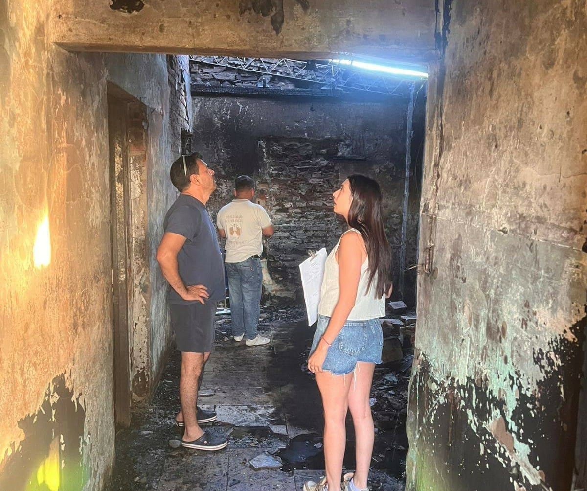 Tras el relevamiento se constató que el siniestro afectó a las paredes y la totalidad del techo de la vivienda, incluyendo la pérdida total del mobiliario de la familia afectada.