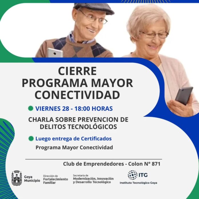 La Secretaria de Modernización y la Dirección de Fortalecimiento Familiar de la Municipalidad de Goya llevarán adelante la jornada de finalización de este programa destinado a los adultos mayores, el próximo viernes 28 de noviembre desde las 18 y 30 horas, en el Club de Emprendedores Goya