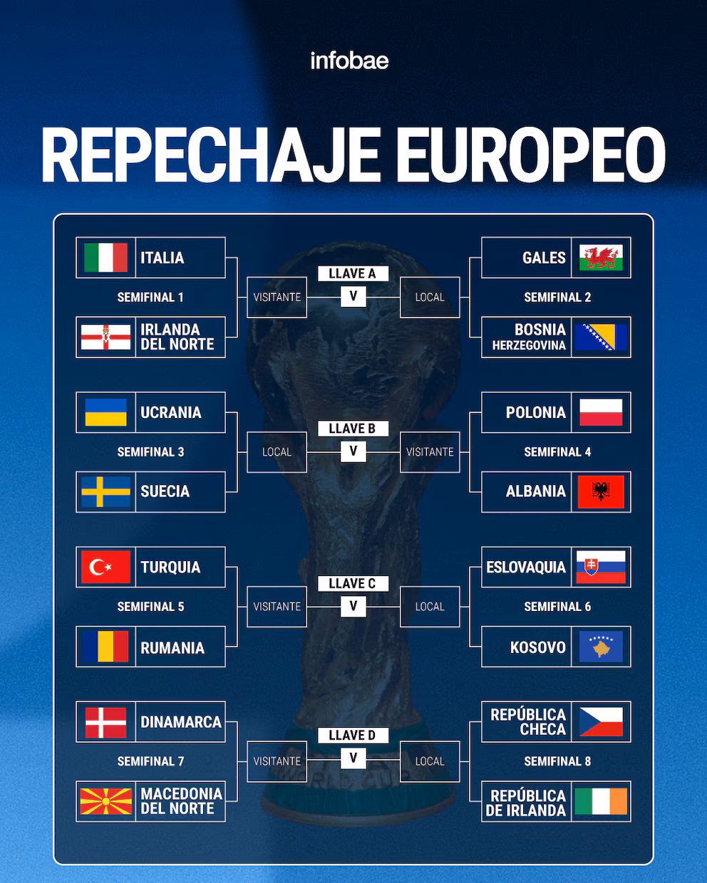 LAS SELECCIONES QUE JUGARÁN EL REPECHAJE EUROPEO PARA EL MUNDIAL 2026 (16/16)