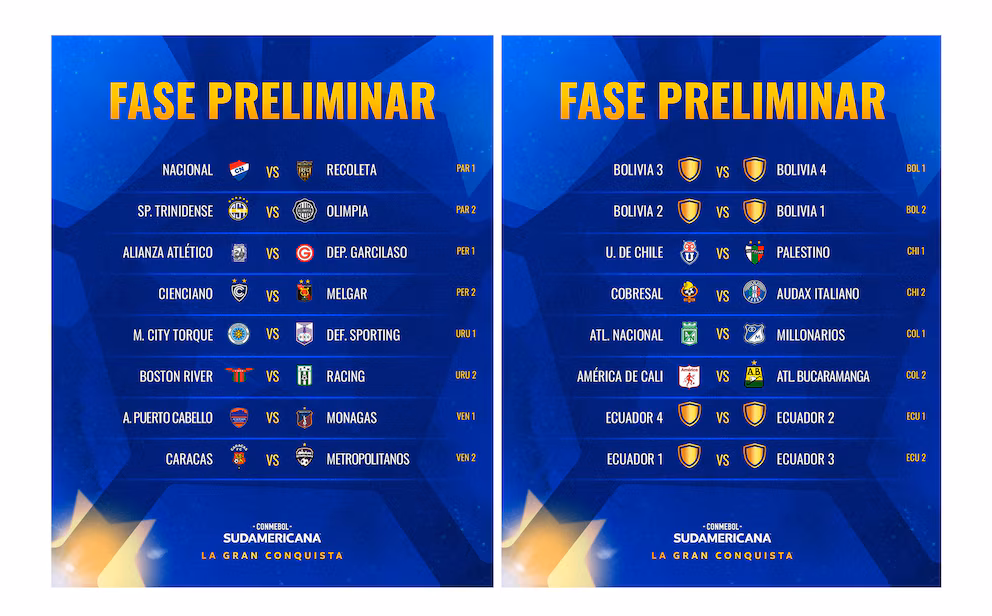 LOS 16 CRUCES DE LA FASE PREVIA DE LA COPA SUDAMERICANA