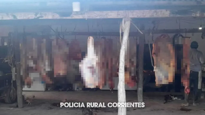 La Policía de Corrientes informó que el sábado desbarató una faena clandestina en San Luis del Palmar.