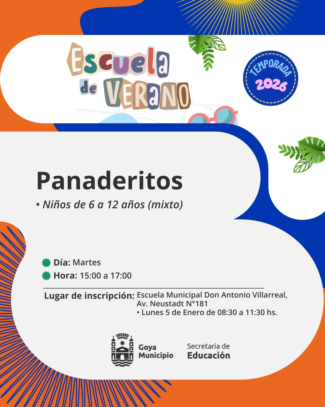 A partir del 5 de enero las Escuelas Municipales “Antonio R. Villarreal” y “Nuestra Señora de Itati” brindaran talleres en el marco de la escuela de verano en sus sedes educativas a niños y adolescentes de 6 a 12 y de 13 a 16 años, en sus diferentes perfiles.