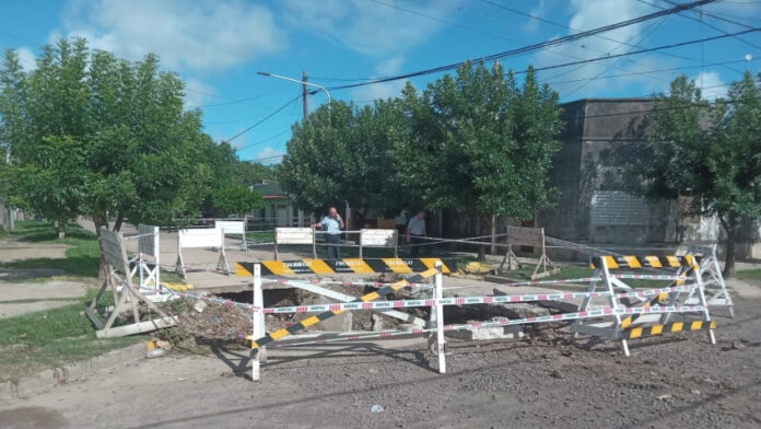 La situación se puso de manifiesto al momento del paso del camión municipal con carga por el sector, el cual cayó en el área afectada por el socavamiento.