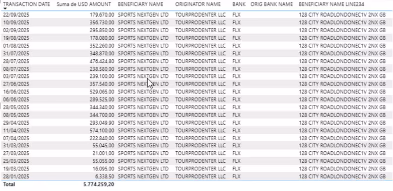 Ese flujo de dinero no fue el único, sin embargo, que ayudó a financiar al club que milita en la “Serie C” del Calcio Italiano. Desde TourProdEnter LLC también se emitieron dos transferencias por US$250.000 cada una a nombre de Beagle Capital Management LLC, el 16 y el 27 de octubre de 2023, otra de las firmas que aparecen como controlantes de la Associazione Calcistica Perugia Calcio.