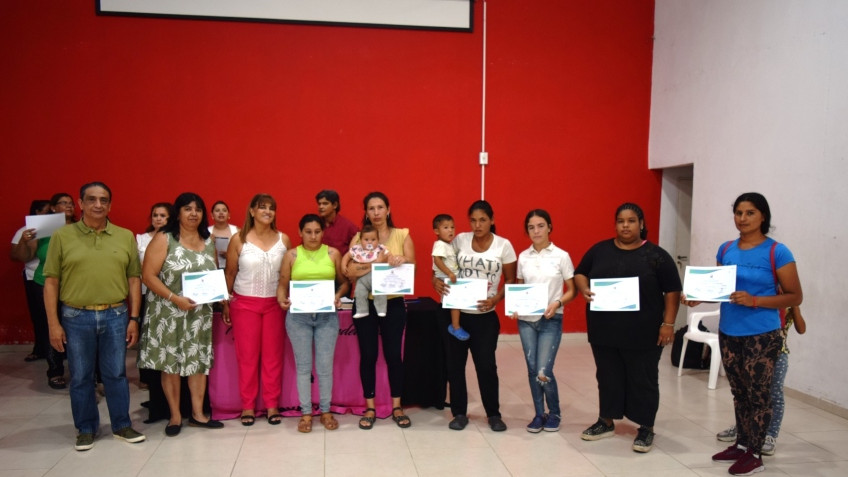 La ceremonia de entrega de los certificados de los talleres ofrecidos por el Grupo de Mujeres Emprendedoras, se realizó el martes 30 a las 20 horas, en el Salón de la Casa del Bicentenario, del acto junto al Secretario de Desarrollo Humano de la Municipalidad Julio Canteros, acompañaron la responsable del Grupo de emprendedoras Mariela Soto; los talleristas, egresados y sus familiares
