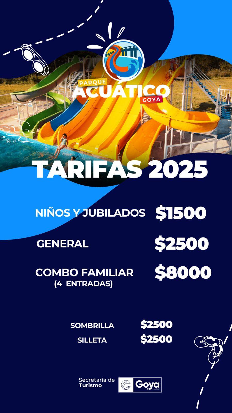 Las tarifas para disfrutar del complejo acuático a la vera del Río Santa Lucia, son las siguientes: