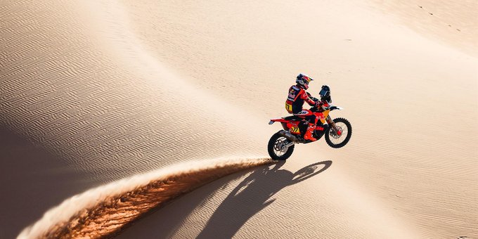 Cuando ingresó en el campamento de Wadi Ad-Dawasir, ubicado al suroeste de Arabia Saudita, Luciano aceleró su moto de alegría y habló ante unos pocos medios, entre ellos Infobae. “Fue una locura. No me imaginaba ganar otra vez en la etapa más larga del Dakar. No era fácil mantener la concentración todo el día. Había dunas al principio y me agarraron mucho tiempo ahí. Lo hice increíble, me concentré un montón, lo disfruté y me vengo sintiendo muy bien arriba de la moto y eso es lo más importante”, dijo Benavides, que terminó arriba en la etapa con 4h26m39s y le sacó 4.50 minutos a su compañero de equipo, el australiano Daniel Sanders, y 5m02s al estadounidense Ricky Brabec (Honda).