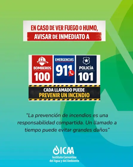 Ante el incremento del riesgo de incendios rurales y forestales en distintos puntos de la provincia, el Instituto Correntino del Agua y del Ambiente (Icaa) reiteró la importancia de extremar las medidas de prevención para proteger el ambiente, los recursos hídricos, la producción y la seguridad de las personas.