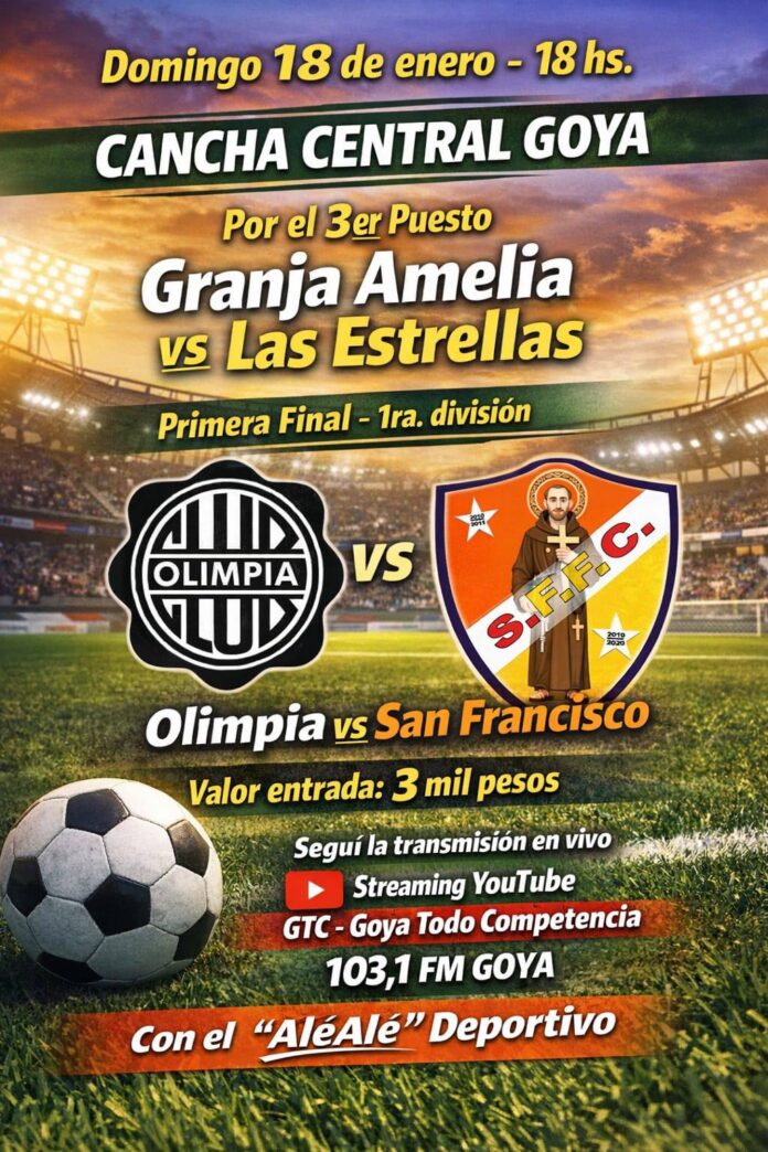 El domingo 18 en el Estadio “Pedro Celestino Lopez” del Club Central Goya se disputará el primer partido final entre los equipos de Olimpia de San José El Bajo y San Francisco de la 1ª Sección Goya