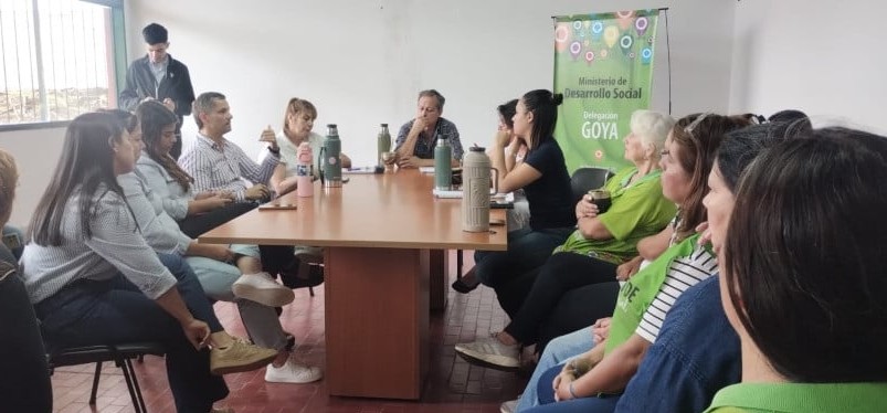 En la mañana del viernes en las oficinas de la Delegación Goya de Desarrollo Social se llevó adelante una reunión de trabajo de la que participaron el Delegado de Desarrollo Social Goya, Ing. Juan de la Cruz Márquez, María Eva Guerra Directora de Organización y Comunicación Comunitaria del Ministerio, representantes de las delegaciones de las ciudades de Esquina, Santa Lucía y personal de la dependencia local.