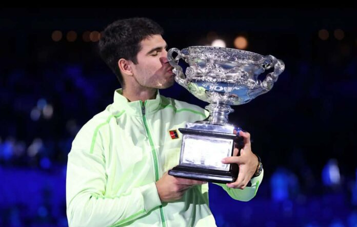 El tenista de 22 años, número uno del mundo durante 56 semanas y dueño de 24 trofeos, incluyendo seis de Grand Slams (US Open 2022-2025, Wimbledon 2023-2024 y Roland Garros 2024-2025), inició oficialmente su temporada aterrizando directo en Melbourne Park.