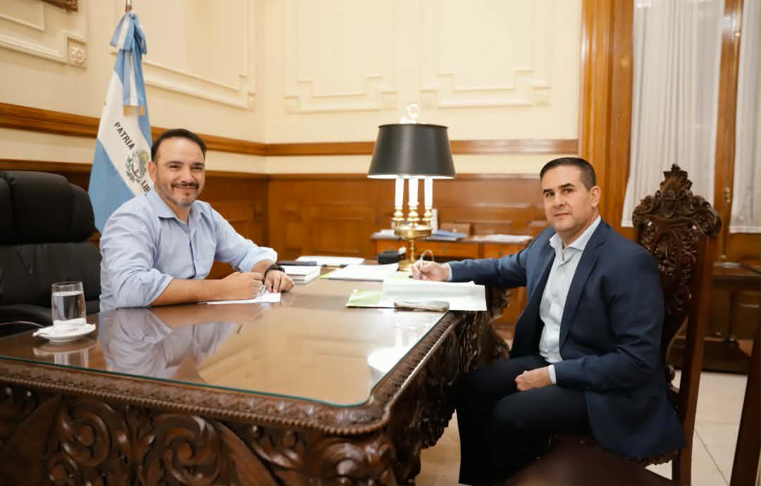 El gobernador Juan Pablo Valdés recibió en su despacho al ministro de Desarrollo Social, José Irigoyen. Dialogaron sobre “la importancia de seguir fortaleciendo políticas públicas orientadas al crecimiento económico y la generación de más oportunidades para nuestra gente”, según expresó el mandatario en redes sociales.