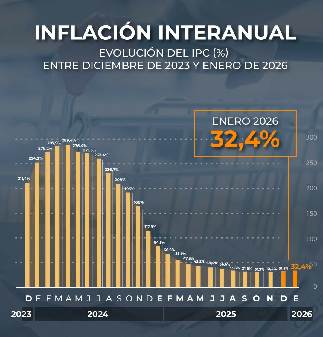 Libertad y Progreso había proyectado una inflación interanual de 32,1%. La variación mensual estimada de 2,6% resultó apenas inferior al 2,8% de diciembre. Algunas consultoras reportaron señales de moderación en las últimas semanas del mes.
