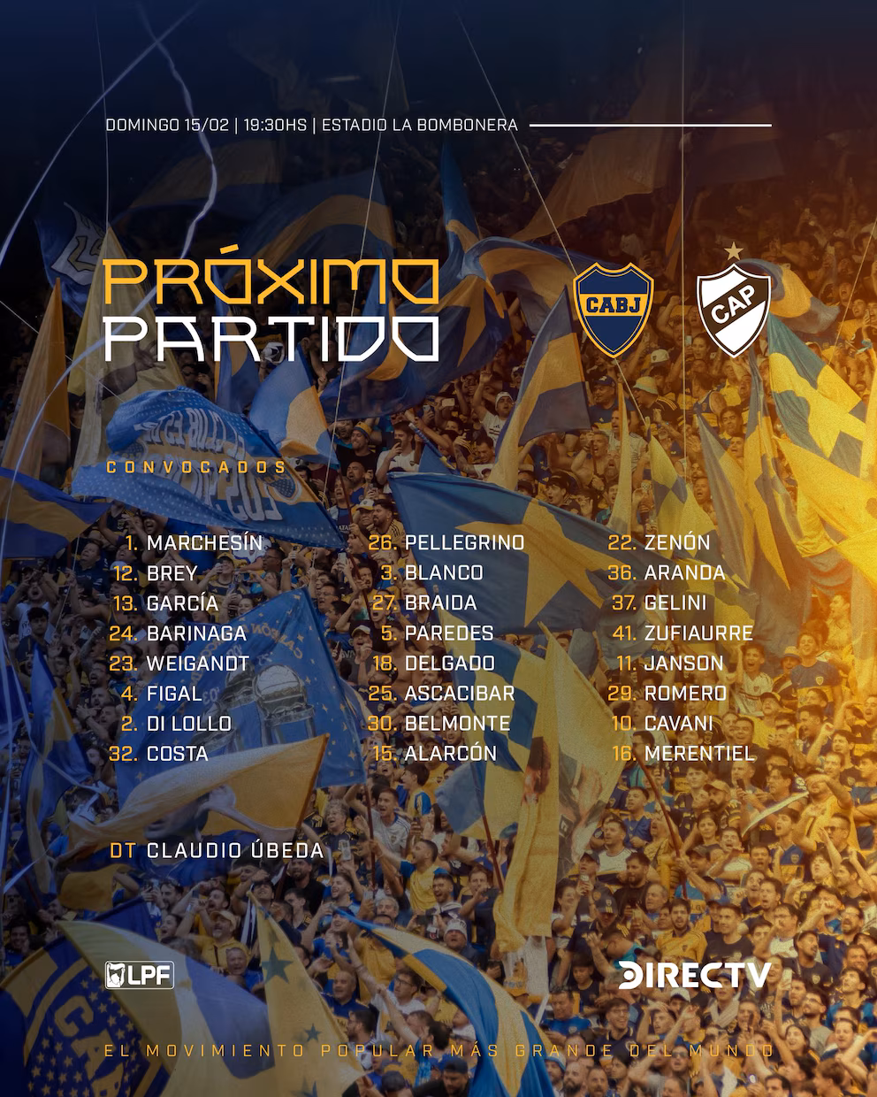 LA LISTA DE CONVOCADOS DE BOCA JUNIORS