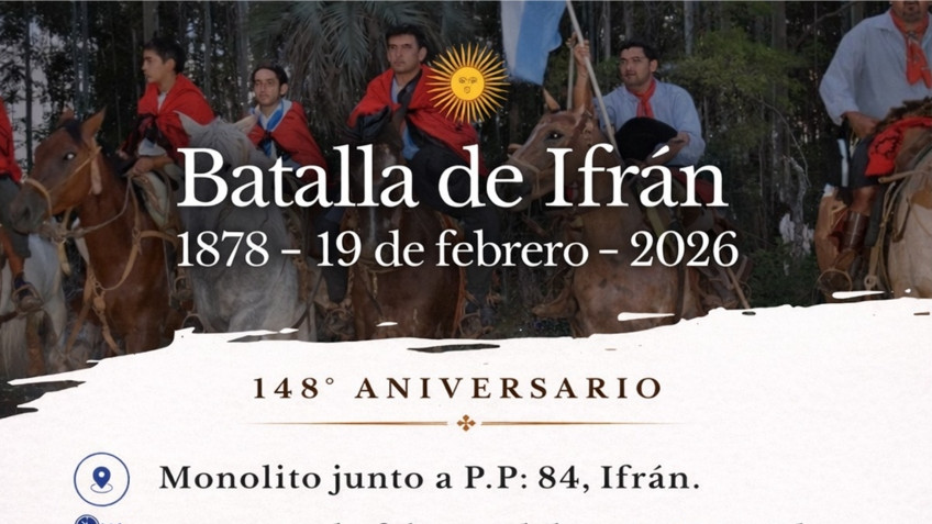 El Intendente Municipal Mariano Hormaechea invita al acto recordatorio del 148º Aniversario de la Batalla de Ifrán, a realizarse el próximo jueves 19 de febrero a partir de las 19 horas.