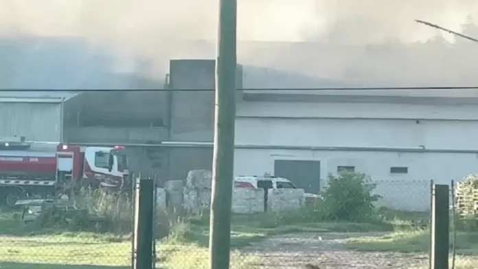 El fuego afectó uno de los galpones de la empresa. Los vecinos del lugar advirtieron el olor a quemado y alertaron a las autoridades cuando se vieron las columnas humo y las llamas.