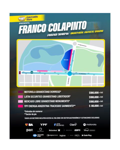 La exhibición de Franco Colapinto a bordo de un auto de Fórmula 1 en Buenos Aires el próximo domingo 26 de abril no solo será un acontecimiento para los fanáticos, sino un gesto central en la estrategia para recuperar el Gran Premio de Argentina tras casi 30 años de ausencia. El evento, que tendrá lugar en un circuito especialmente montado sobre la Avenida del Libertador y la Avenida Sarmiento, ya tiene oficializados los valores de las entradas y cómo adquirirlas.