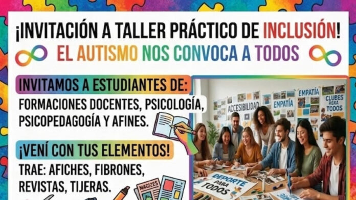 Organizado por el Club de Leones Goya, ADAPED y Fundación Valiente organizan e invitan al taller práctico de inclusión sobre el autismo, el próximo miércoles 15 de abril a las 20:30 en España 254.