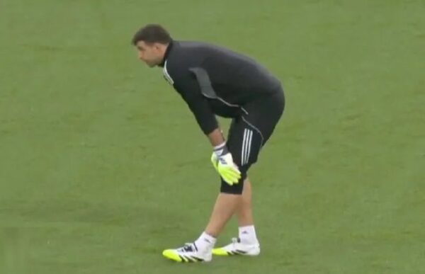 Al arquero argentino se lo vio con algunas muecas de dolor mientras pateaba y luego de consultarlo con el cuerpo técnico del club inglés, abandonó los movimientos precompetitivos y ni siquiera integrará el banco de suplentes.