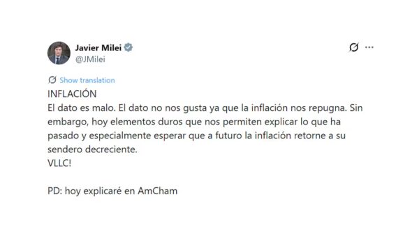 Javier Milei: “El dato de inflación es malo”