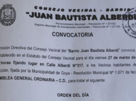 Convocan a Asamblea General Ordinaria Barrio Juan Bautista Alberdi