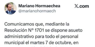 El Intendente anunció asueto administrativo con motivo del Día de la...