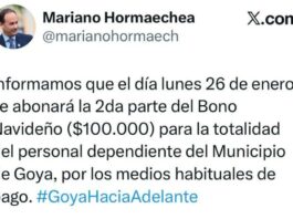 Lunes 26: El Intendente comunica el pago de la 2da parte del Bono Navideño
