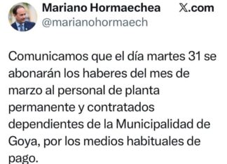 Mediante el uso de sus redes sociales, el Intendente Municipal Mariano Hormaechea informó que este martes 31 de marzo se abonarán los sueldos correspondientes...