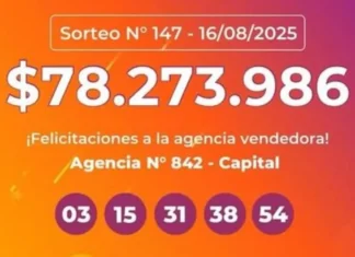 La apuesta ganadora fue realizada en la agencia oficial N° 842