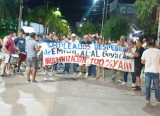 Anoche, en el cierre de los carnavales, un grupo de trabajadores despedidos de la textil Alal se manifestaron frente a la puerta de ingreso...