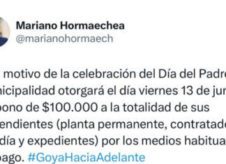 El intendente de Goya, doctor Mariano Hormaechea, anunció a través de sus redes sociales el...