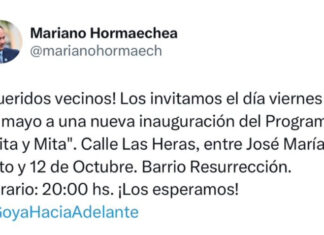 El intendente de Goya, doctor Mariano Hormaechea a través de sus redes sociales invita...
