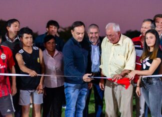 El intendente Mariano Hormaechea presidió el acto de iluminación de la cancha de fútbol del paraje Batel