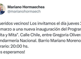La inauguración será este Jueves 20 horas en el Barrio Mariano, en calle Chile entre Gregorio Olivera y Gendarmería Nacional.